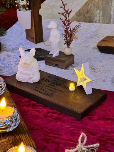 An unserem Stand erwartet Sie eine zauberhafte Auswahl an individuellen Dekoartikeln und stilvollen Geschenken – alles aus hochwertigem Holz gefertigt. Jedes Stück erzählt seine eigene Geschichte und strahlt eine warmherzige Gemütlichkeit aus, die perfekt zur besinnlichen Weihnachtszeit passt.